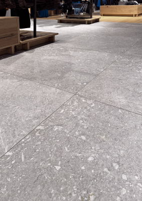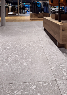 Beyond its aesthetic value, this technical porcelain delivers the performance required for high-traffic commercial environments. Its durability ensures long-lasting quality, while its timeless look allows seamless integration with other architectural elements throughout the store.